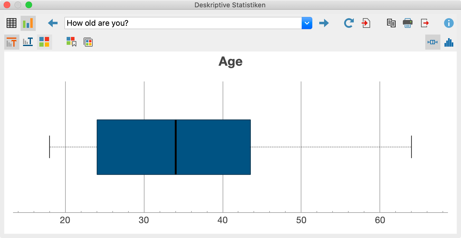 Boxplots und Histogramme können in den Ausgabeviewer transferiert und für einen späteren Export aufbewahrt werden. Sie lassen sich auch in ein QTT-Arbeitsblatt einfügen. Klicken Sie hierzu auf die entsprechenden Icons oben rechts.
