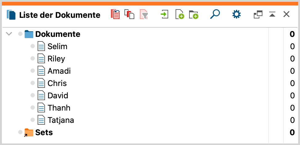 - Aktivieren Sie Dokumente, z.B. indem Sie auf das Dokumentsymbol vor dem Dokumentnamen klicken.