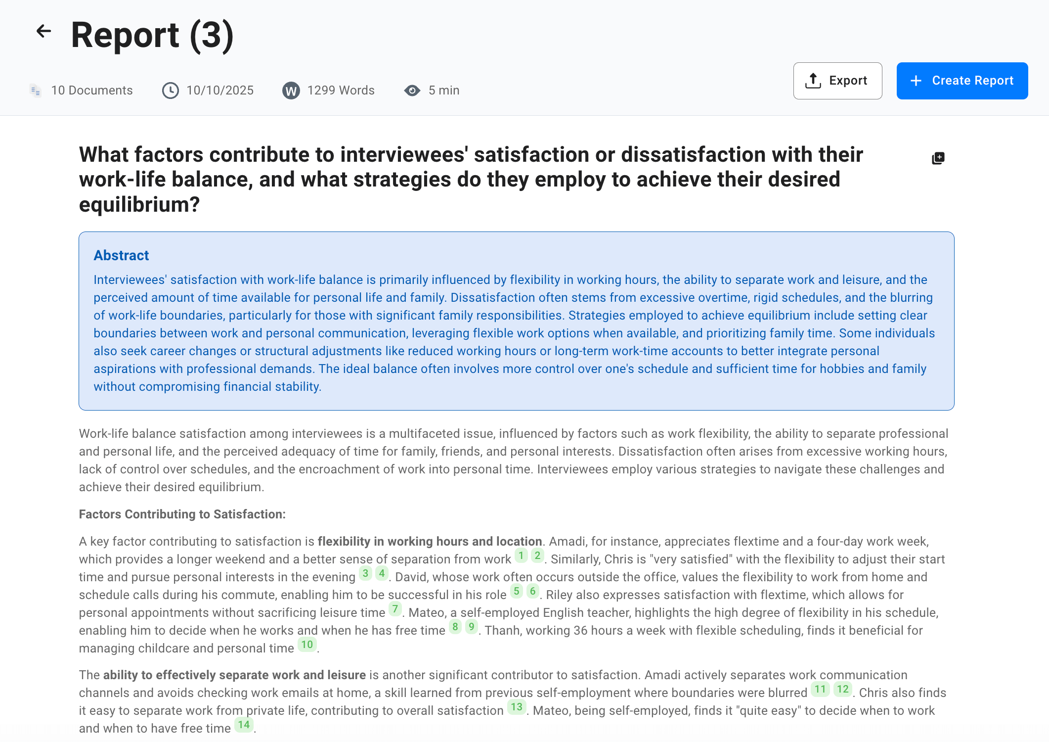 Volle Transparenz: Interaktive Zitate verlinken jede Erkenntnis direkt mit dem Originaltext, damit Sie die Ergebnisse leicht überprüfen und den Kontext verstehen können.