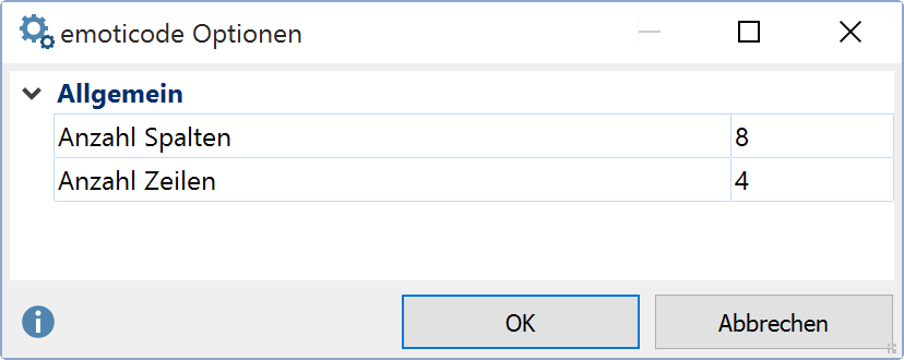 Optionen für das emoticode-Fenster