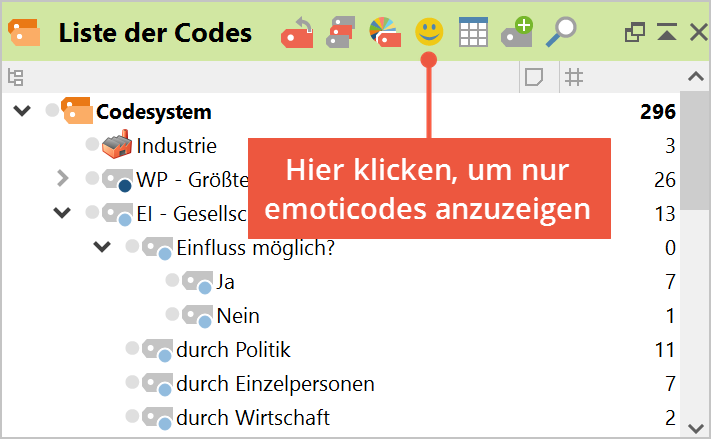 Emoticons in der „Liste der Codings“ und in der „Übersicht Codings“