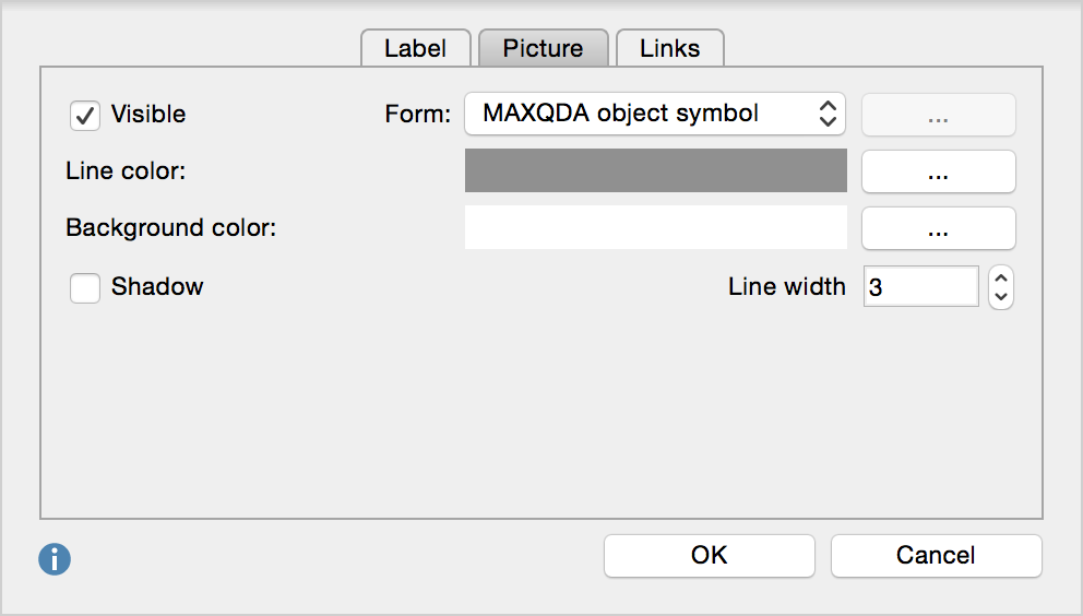 When importing MAXQDA objects, initially the standard icon assigned in MAXQDA is transferred. It is then possible though to exchange the picture and to import another picture, clip art, or drawing.