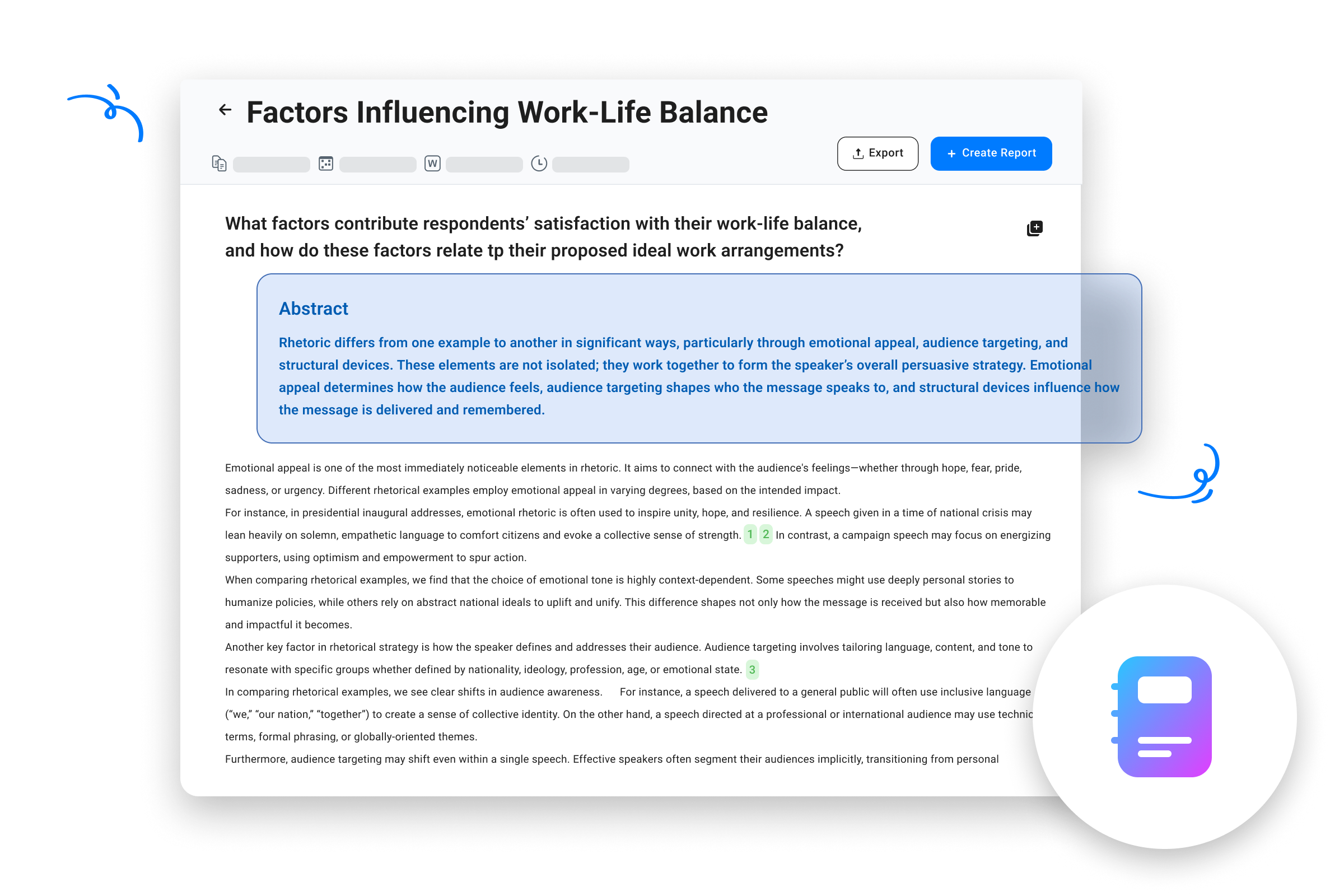 - Volle Transparenz: Interaktive Zitate verlinken jede Erkenntnis direkt mit dem Originaltext, damit Sie die Ergebnisse leicht überprüfen und den Kontext verstehen können.