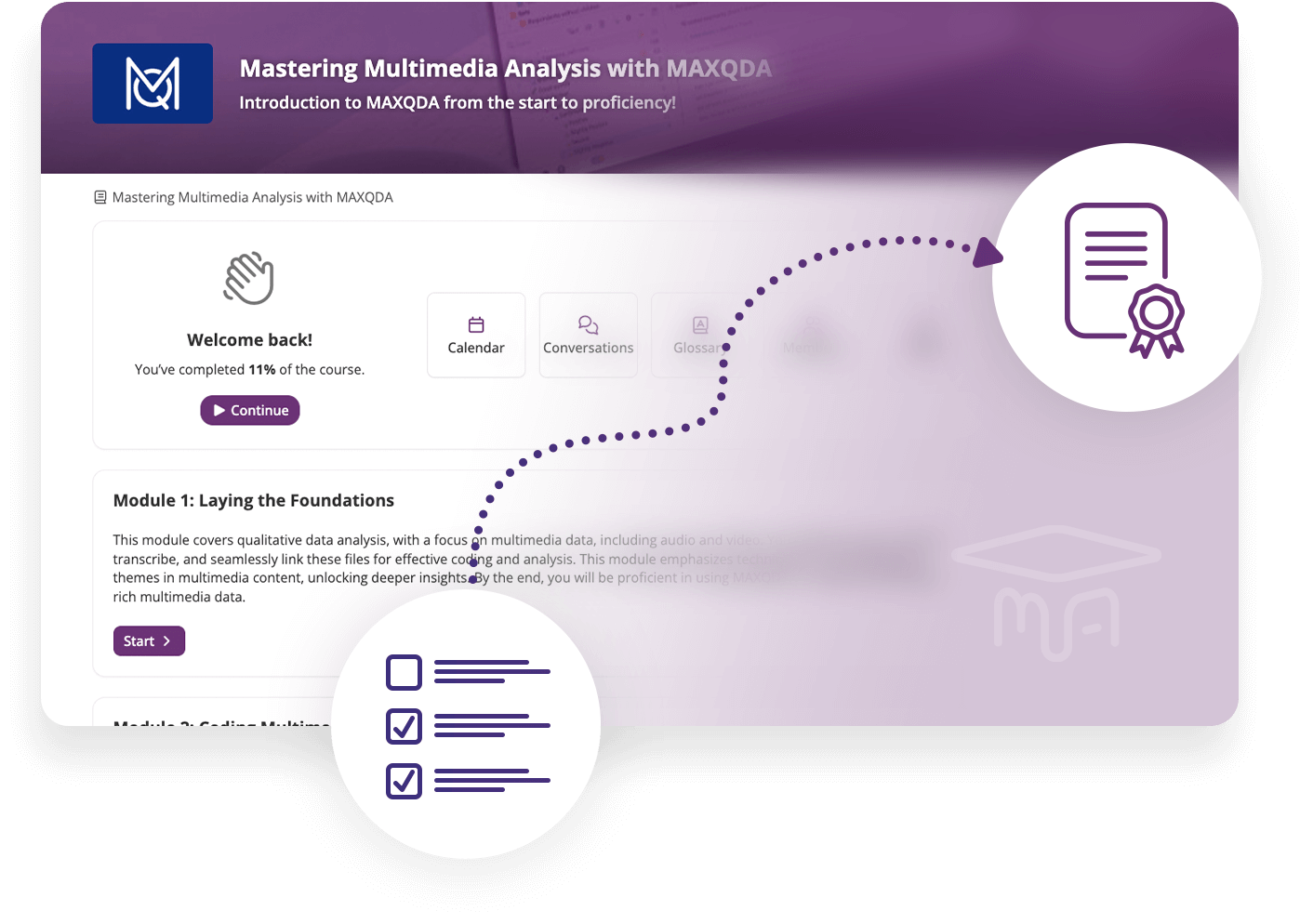 After all lessons are successfully completed, you will receive an official MAXQDA certificate.